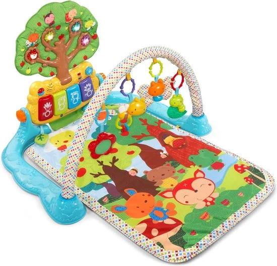 - Can be used in three different positions: interactive play blanket, when playing with the elements hanging in the arch, to play lying with the piano and to sit with the tree and the pull-out piano.