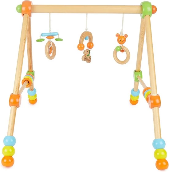 - TIP: Het babyspeelboog hout is perfect te combineren met een Bieco babyspeelkleed. Als cadeau zit je gegarandeerd goed met deze mooie speeltrapeze.