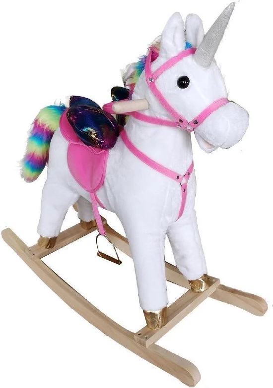 Pluche eenhoorn hobbelpaard met geluid 68x29x73 cm