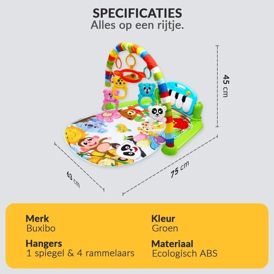 Stimuleert de ontwikkelingHet is nooit te vroeg om te gymmen! Lekker in beweging begint al voordat de baby kan lopen! De Buxibo babygymniet alleen een prachtige speelplek, maar ook een leeromgeving. J