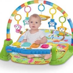 De babygym van Nanan is een magische plek om te spelen en te leren. Een tapijt van zachte chenille katoen, licht opgevuld met vezelwatten, waaruit het hoofd en de voeten van de tedere teddybeer gluren. Sound Stars, hartjes, manen en opgehangen teddyberen stimuleren de eerste waarnemingen en de fantasie van de baby’s. Van jeugdvrienden vergezellen je en volgen je baby tijdens de eerste stapjes en eerste fantasieën.