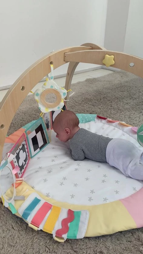 Deze ‘baby-play-gym’ is ontworpen door experts op het gebied van opvoeding en ontwikkeling van kinderen en is zorgvuldig doordacht om jouw baby de juiste stimulatie te geven. Het heeft verschillende activiteitengebieden die specifiek zijn gericht op het bevorderen van de ontwikkeling van jouw baby: