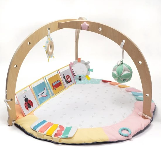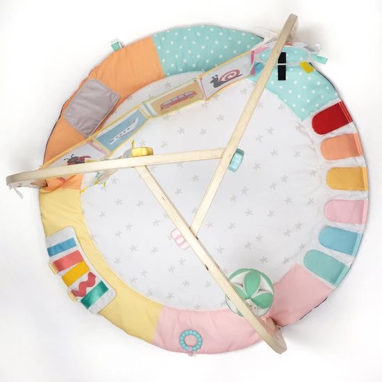 Een zeer zacht katoenen speelkleed zodat je baby er lekker op kan liggen en spelen. De houten bogen zijn eenvoudig te monteren en te demonteren.