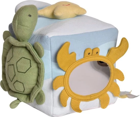 Tikiri: ACTIVITEITENKUBUS Oceaan 14x14x14cm, in biologisch katoen, met hangkaart, 0+