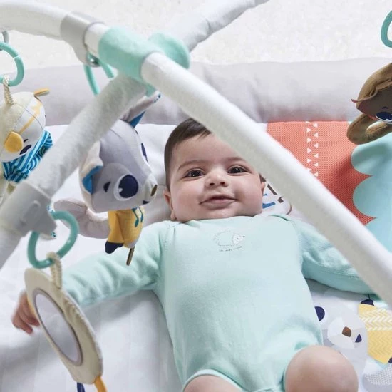 De Polar Wonders Plush Gymini omhult baby’s in een inspirerende arctische wereld, vol avontuur, nieuwe vrienden en ultrazacht comfort. De Gymini is ontworpen met een elegant kleurenpalet, eersteklas materialen en hoogwaardige stoffen, om een mooie en stijlvolle aanvulling op elk huis te zijn. Het zachte en harige ontwikkelingsspeelgoed van Gymini inspireert baby’s om hun belangrijkste vaardigheden te verbeteren terwijl ze verrast en blij zijn. Een schattige husky die boeiende geluiden speelt om de baby te verrassen, en een sneeuwvlok met een driekleurige lichtshow die de baby boeit. De Gymini-babygym heeft verstelbare bogen die gemakkelijk op verschillende manieren kunnen worden geplaatst om de ontwikkelingsomgeving van je baby te verbeteren